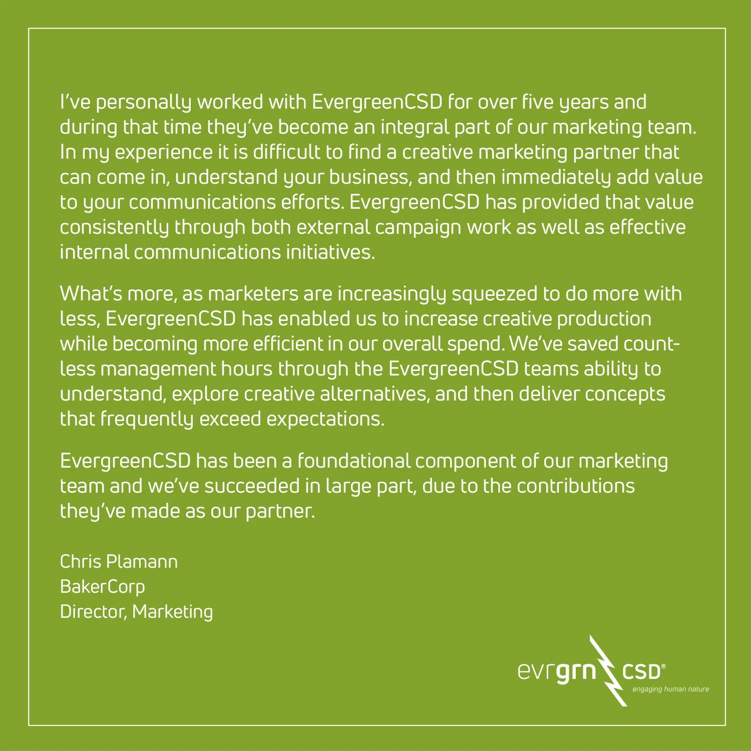 At EvergreenCSD, you get the best of both worlds: deep relationships with a close-knit team who truly gets to know your business, and decades of big brand experience that drive effective, results-focused communication. We’re real people, and we care. That human touch is at the heart of everything we do.